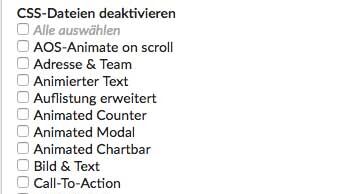 • CSS optimieren: CSS-Dateien die nicht benötigt werden, z.B. Kommentare, Newsletter, CTS-Elemente, können deaktiviert werden.